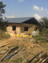 We finally got started on our center in Ghana. In this picture the walls are almost up. In the pictures below you can see that roof has been put on. The gable ends need to be blocked up yet. The well is drilled. We have good water at 240 feet. We need to put up solar panels for our electric yet. Most places in Ghana have gravity fed water. This is done by putting in a tower and pumping the water up to a tank on top of the tower. This is best because power is not always available We need yet to build the tower. On our tower above the tank we are wanting to put in solar panels for our electric.